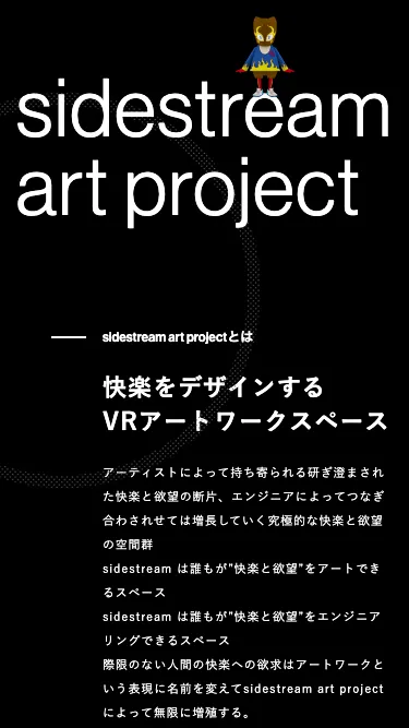 テクノロジーを駆使し、多様なエンタテインメント体験を提供する LATEGRA 様によるVR実験プロジェクト「sidestream art project」 のWebサイト実装を担当しました。 クライアント側でコンテンツの随時更新が行えるよう、WordPress を用いたCMS構築を行い、柔軟な運用が可能なサイトに仕上げています。